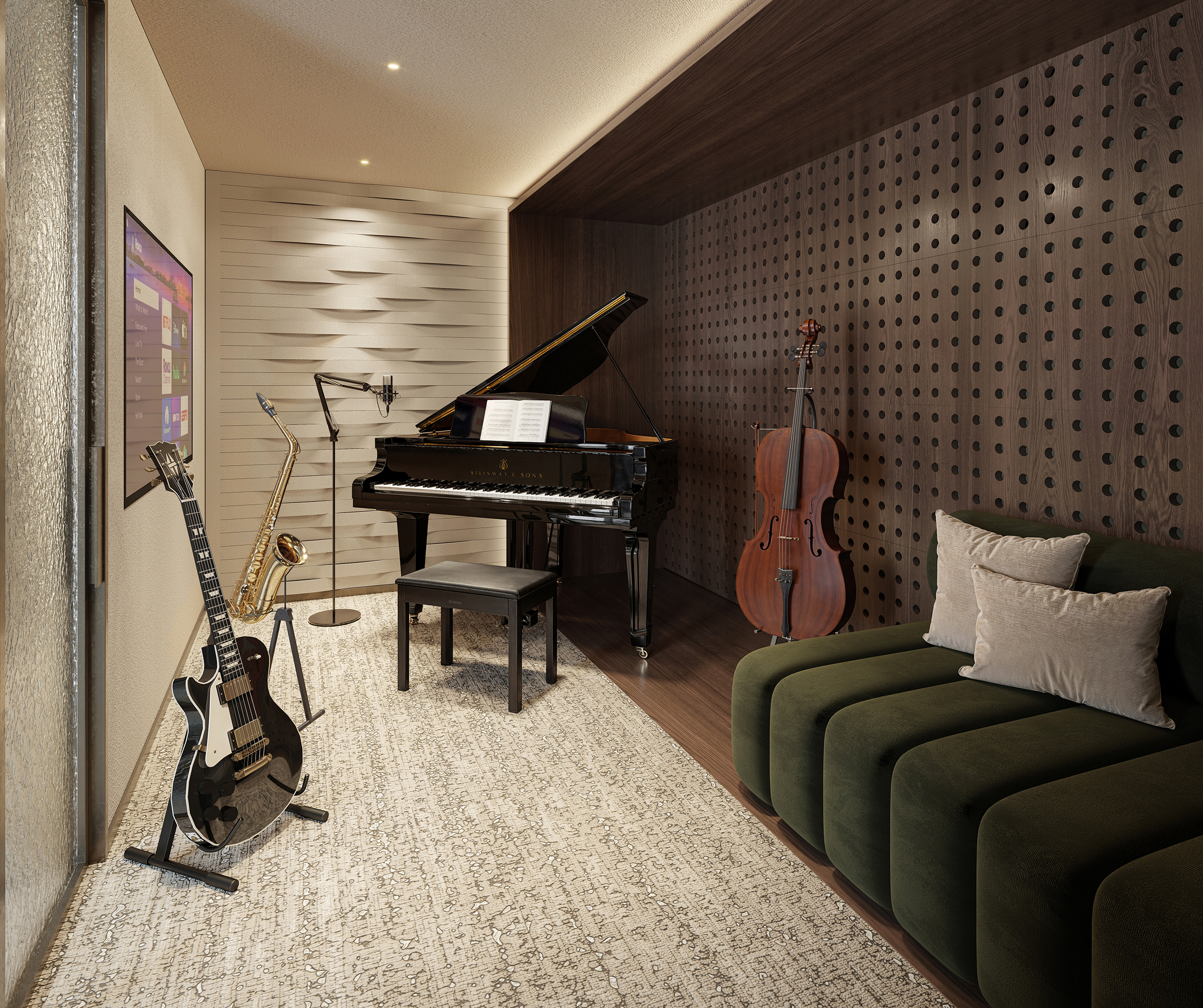 Featuring its very own baby grand piano, the music room will provide residents with the chance to develop their musical talents, whether beginners or experienced musicians looking for a space to practise and perform.