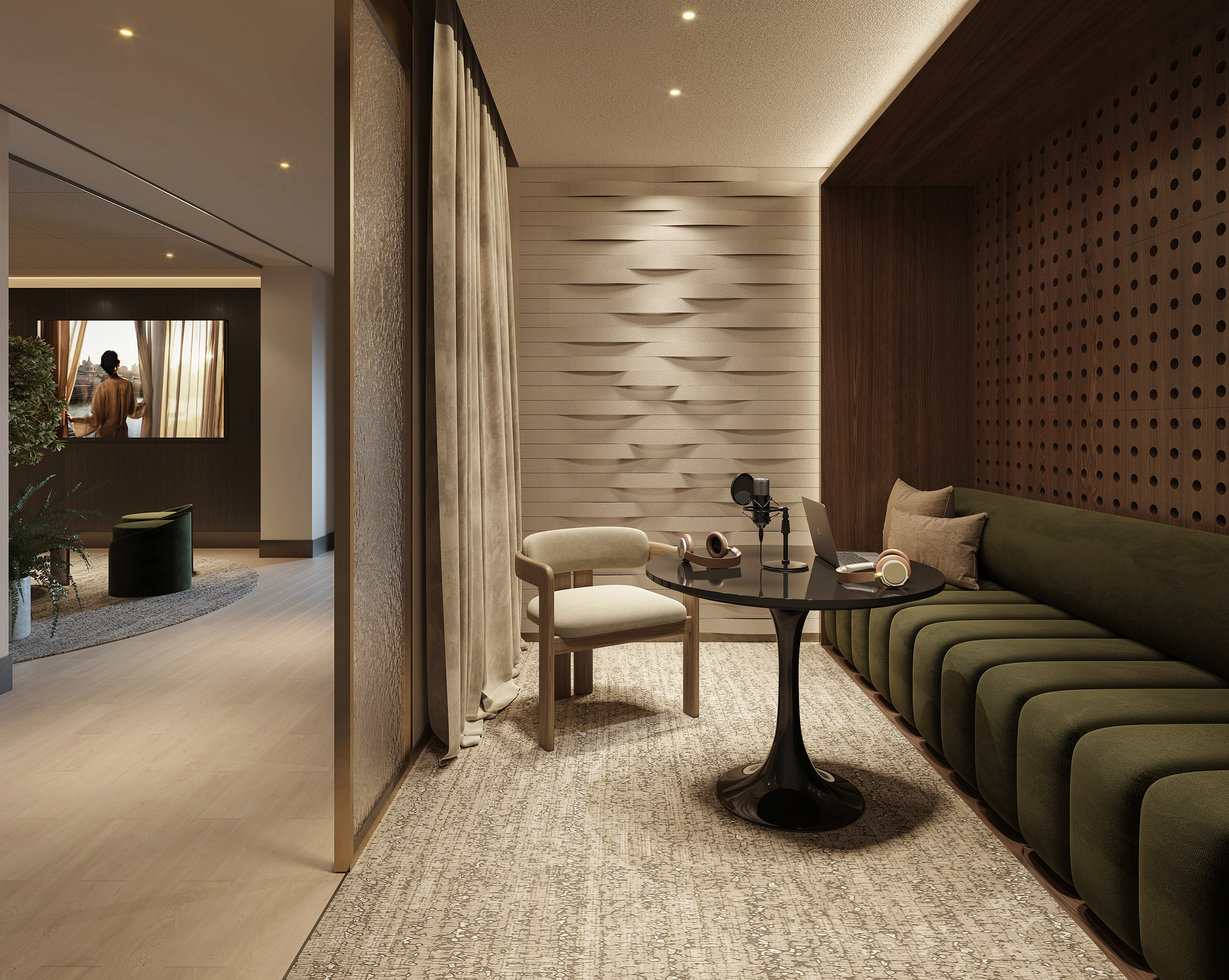 The screening room will offer an elegant, relaxing and comfortable setting for private film screenings or presentations, making it perfect for movie lovers and professionals alike.